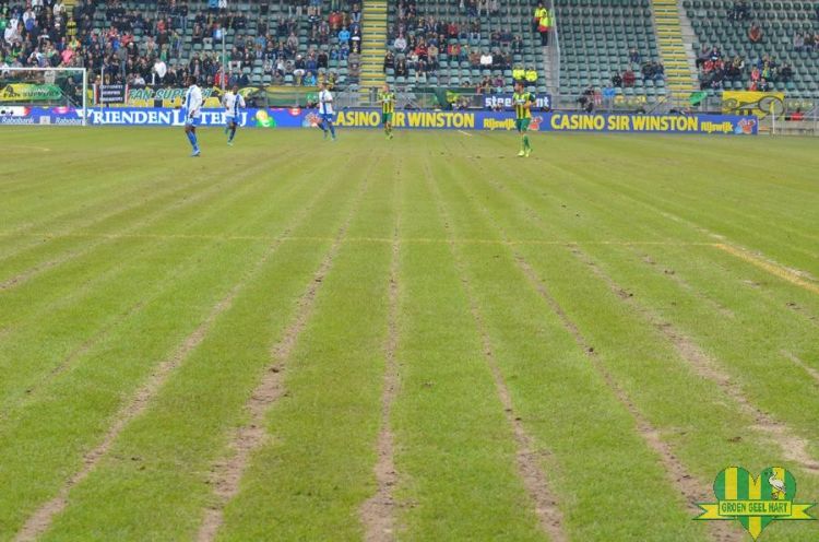 Een woordvoerder van de voetbalbond laat aan Omroep West weten dat het veld van ADO Den Haag gisteren tegen Vitesse (2-1) onbespeelbaar was. ‘Aanvankelijk werd het veld goedgekeurd maar gedurende de wedstrijd kwamen we tot de constatering dat spelen op deze ondergrond eigenlijk onmogelijk was’, aldus de woordvoerder van de KNVB.