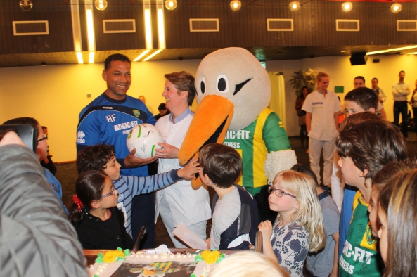 Rond drie uur kwamen de spelers, onder wie Vito Wormgoor, Gino Coutinho en aanvoerder Danny Holla het JKZ binnen. De hal vulde zich binnen een mum van tijd met kinderen (en hun ouders) die allemaal met de voetballers op de foto wilden.