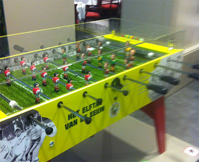 Een tafelvoetbalspel met ADO-elftal van de eeuw