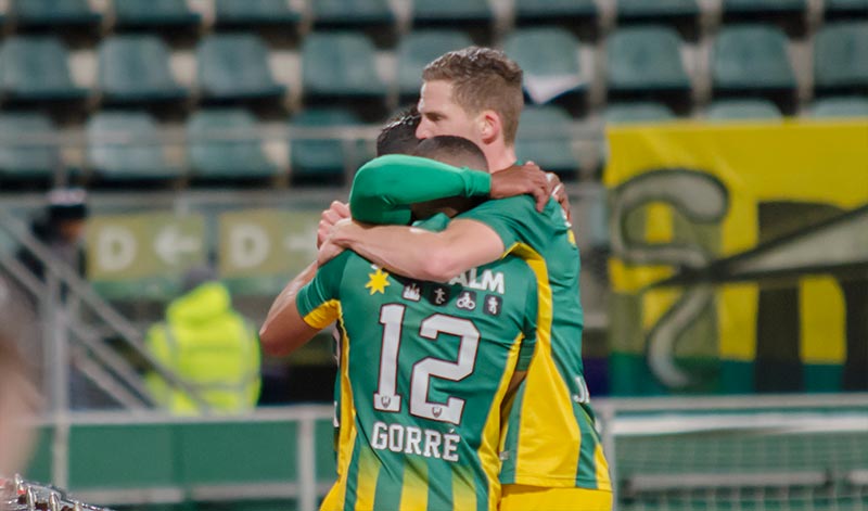 In alle euforie over de gelijkmaker vergat ADO vier minuten later Kelvin Leerdam goed te dekken. De makkelijk scorende verdediger van Vitesse kopte simpel raak na een vrije trap van Lewis Baker. Diezelfde Leerdam voelde zich even na rust gedupeerd toen scheidsrechter Bas Nijhuis voor een strafschop floot.