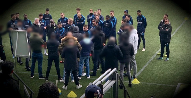 The supporters of The Hague are tired of the players and their efforts. They went on to the field including flipboard and tactics during the training. #afraidofsecondleague #ado pic.twitter.com/wTdbkqsYh7