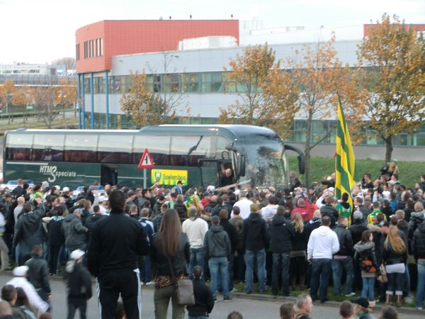Om fans die de ADO-spelers toch een hart onder de riem willen steken tegemoet te komen, zal de spelersbus zondag om 10.15 uur over de Donau richting de A4 rijden. Ter hoogte van de rotonde bij de Tiber zal de spelersbus stapvoets rijden zodat de supporters daar een erehaag kunnen vormen.