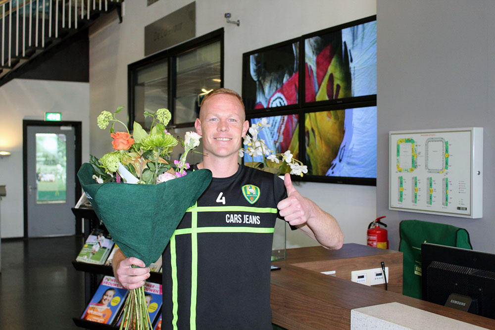 Een supporter van FC Utrecht heeft een bloemetje naar ADO Den Haag-speler Tommie Beugelsdijk gestuurd. De Haagse verdediger was afgelopen zondag in de Galgenwaard het doelwit van spreekkoren.